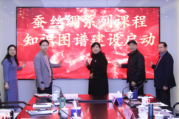 会议包括AI赋能蚕丝绸文化系列课程建设报告、知识图谱建设启动仪式以及智慧课程建设推进研讨交流等环节。